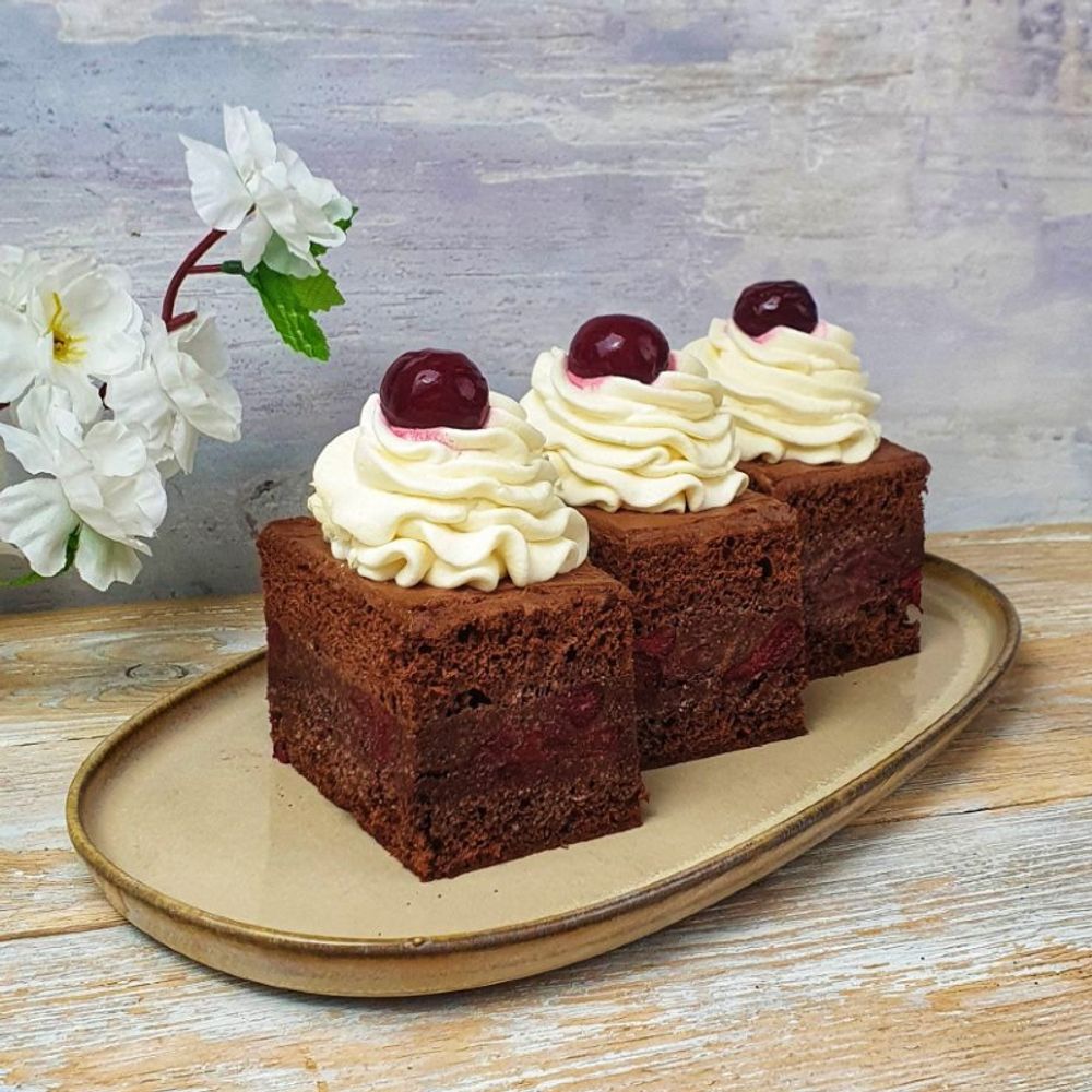 Бисквит шоколадный, крем шоколадный, вишня, глазурь .