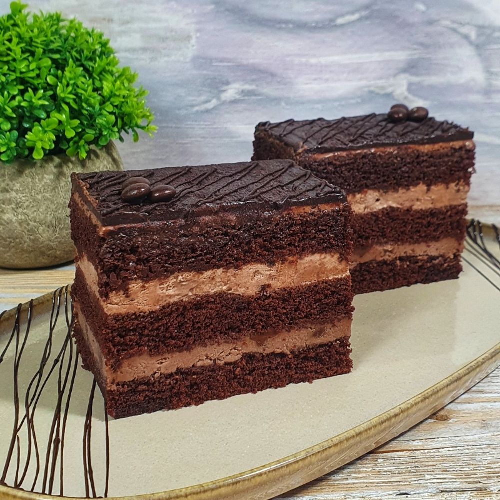 Бисквит шоколадный, сливочно-шоколадный крем с эффектом мороженого.